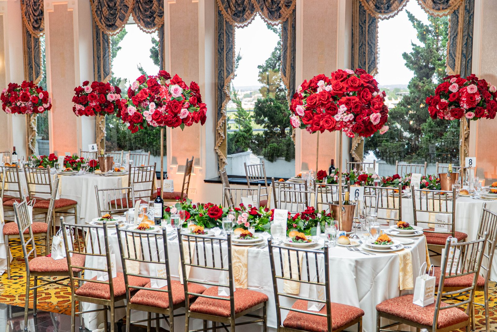 Our wedding flower centerpieces feature lush blooms and artistic arrangements, adding color, texture, and romance to your reception tables.